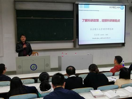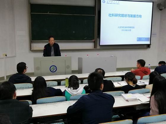 10月21日晚,云顶国际vip88662018年岗前培训科研专题讲座在金盆岭校区6教107举办,校人文与社会科学研究处处长卿定文教授、科学研究部副部长关宏信教授受邀主讲,人事处副处长徐欣国及全体培训学员参加了专题讲座。