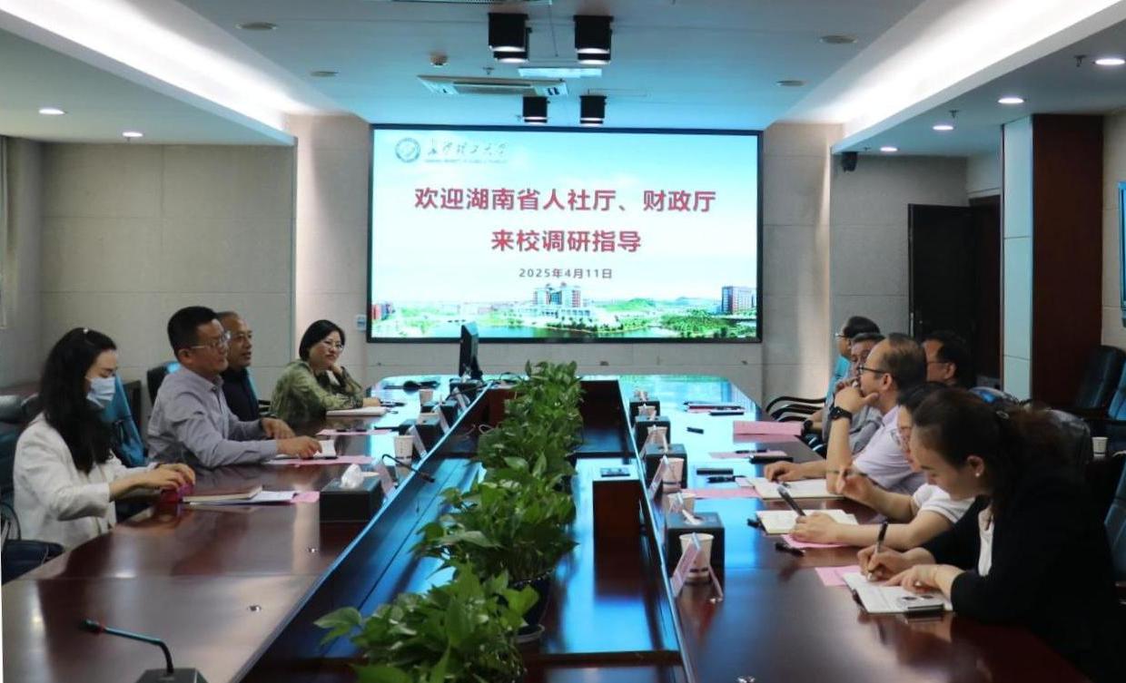 4月11日上午,湖南省人社厅工资福利处处长、一级调研员唐西游,副处长、三级调研员蒋志勇,一级主任科员郭雅琴,湖南省财政厅综合处四级调研员王国玺一行来校开展调研座谈。校党委委员、副校长刘朝晖出席,人事处、计财处、科技处负责人参加调研座谈会。会议由人事处处长、教师工作部部长刘宏伟主持。