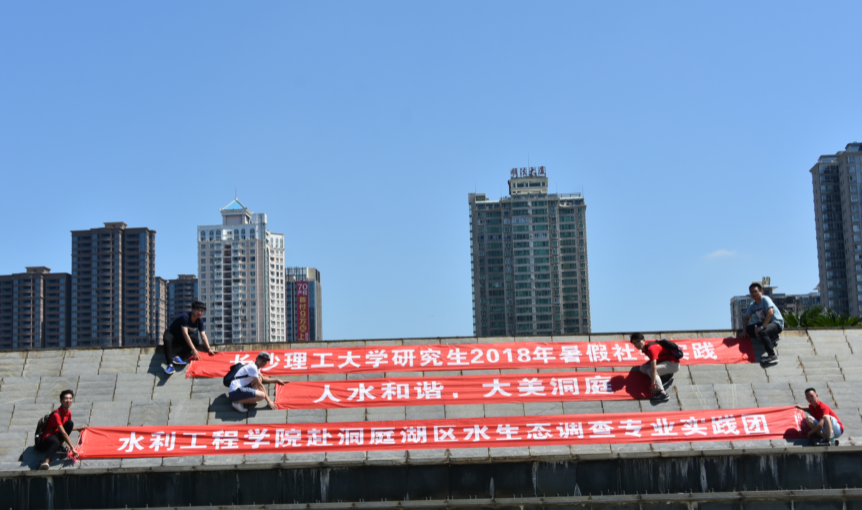 本次洞庭湖区调研得到校研究生暑期社会实践项目(2018ZYSJ06)和湖南省科技重大专项(2018SK1010)资助和学院领导的大力支持。