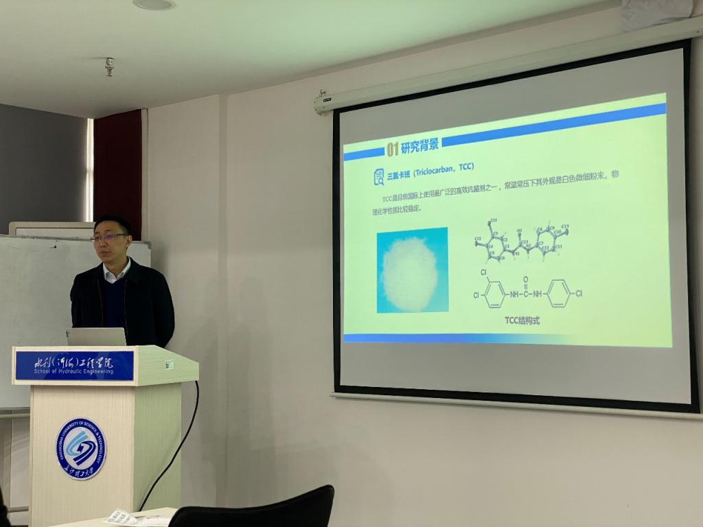 王冬波还为云顶国际vip8866师生作了一场《三氯卡班在硝化系统中的行为及其影响》专题讲座。随后,我院2018级硕士生王泓同学和2019级硕士生涂智同学分别作了《一段式自养脱氮生物反应器的研发及性能研究》和《单级自养脱氮气升式自循环分区反应器的脱氮性能研究》的学术汇报;并由王冬波对其分别进行指导。