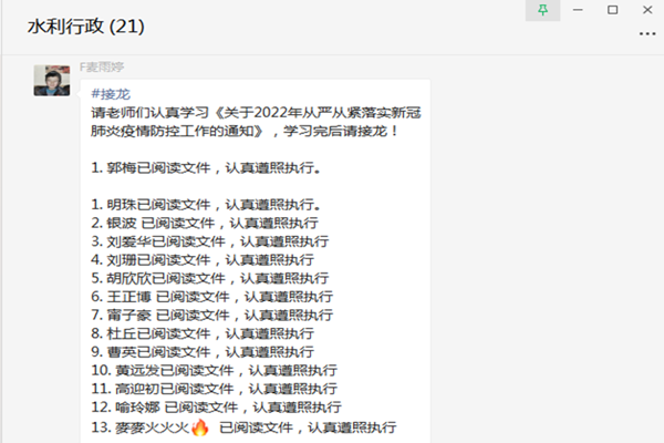各系利用QQ群和微信群组织教师自学,再次认真掌握《关于2022年从严从紧落实新冠肺炎疫情防控工作的通知》精神和《云顶国际vip8866水利与环境工程学院疫情防控应急处置预案》的处置流程,确保每位教师都具备随时随地处理突发状况的能力。