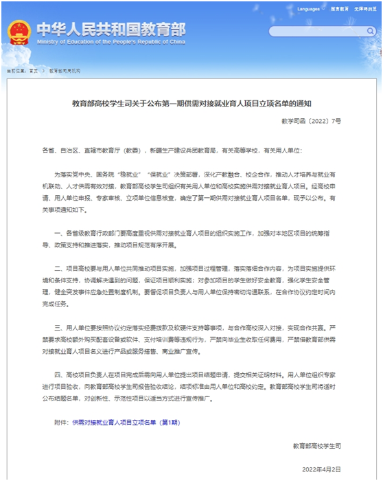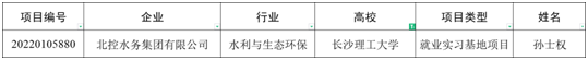近日,教育部高校学生司下发《教育部高校学生司关于公布第一期供需对接就业育人项目立项名单的通知》(教学司函〔2022〕7号)文件,公布了全国第一期供需对接就业育人项目名单,我院孙士权副教授牵头主持的《北控水务集团—云顶国际vip8866智慧水务就业实习基地项目》(编号:20220105880)成功获批。