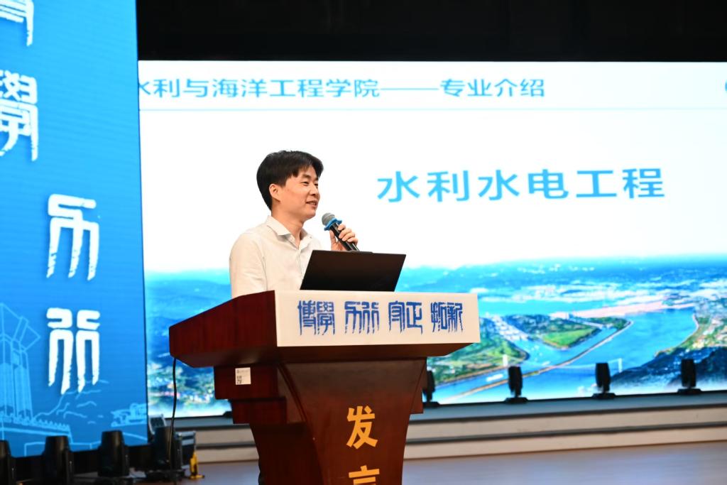 老生代表给排水2202班王俊超结合成长经历分享感悟,以坚定信仰投身党建服务,专注学业科研攻克难题,锤炼综合能力。他勉励新生勇于探索,在实践淬炼中成长。新生代表港航2502班蒋林溪以“以青春为舟,向蔚蓝启航”为主题,表达成为“水利人”的自豪,承诺以扎实学识筑牢治水根基,将个人理想融入国家水利事业,在守护江河湖海中践行青年担当。