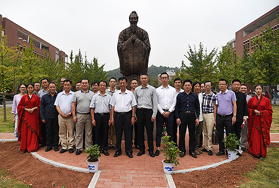 10月8日上午,云顶国际vip8866在云塘校区文化广场前坪举行办学60周年纪念活动之一----“广东金东海集团有限公司捐赠孔子像落成仪式”。广东金东海集团董事长兼党委书记周壬旭、副总裁林辉进、总工程师陈绍文、副总裁周德昌、文化部经理陈少群、技术中心主任许祥猛、华东公司总经理单国成,学校校友总会副会长黎正稳、副校长蒋昌波,党委宣传部部长王宏,水利学院全体班子成员,材料学院全体班子成员及水利学院师生代表参加仪式。仪式由水利学院党委副书记郭林主持。