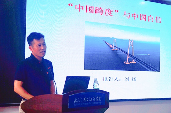 6月18日下午,副校长刘扬教授在工三B319以《“中国跨度”和中国自信》为题,为水利工程学院全体教职工上了一堂思想理论课。水利学院党委书记喻玲娜主持讲座,全体水利学院教职工参加了此次讲座。