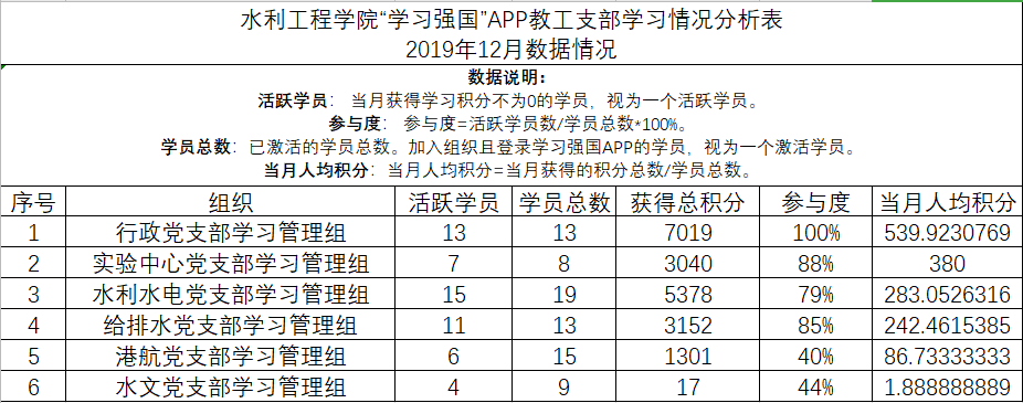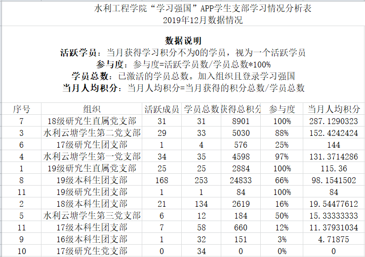 通过比对12月2日及12月22日两个日期每个支部党员在“学习强国”平台上的学习分数,得出了12月份我院党员的学习情况,现将评比结果通报如下。