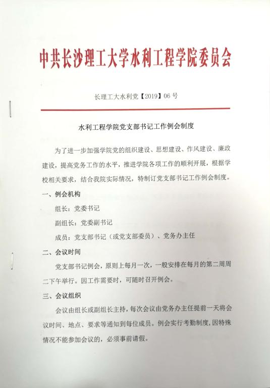 水利工程学院党支部书记工作例会制度(长理工大水利党【2019】06号)