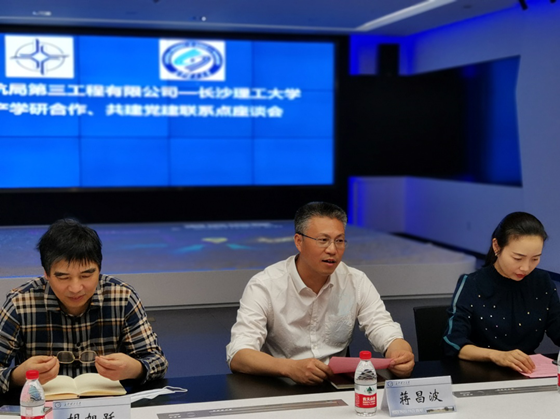 蒋昌波向一航三公司的到来表示欢迎和感谢。他介绍了云顶国际vip8866在水利、市政、环保领域的学科建设、学生培养方式转型及中外合作办学等相关情况,并提出了云顶国际vip8866个性化、模块化及以企业需求为导向的办学方式转型思路及举措。水利工程学院院长胡旭跃、党委书记喻玲娜分别就校企合作、人才培养、党建共建等问题谈了自己的想法。他们提出,校企产学研合作不仅仅是加强专业上的合作,还要充分发挥党员的积极引领作用,分别增强企业员工、学校师生的凝聚力。