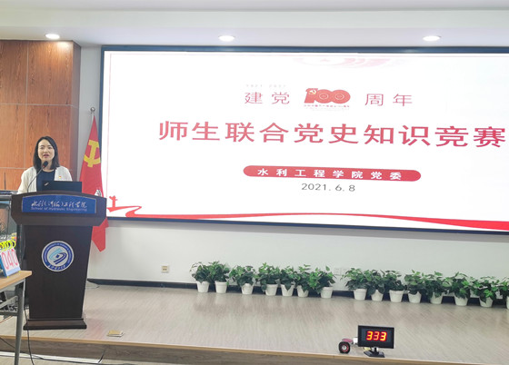 6月8日下午,水利工程学院师生党员聚集工三B319,举行“师生联合”党史知识竞赛。院党委书记喻玲娜,院长陈杰,院党委副书记银波,副院长孙士权、邓斌担任了评委嘉宾。