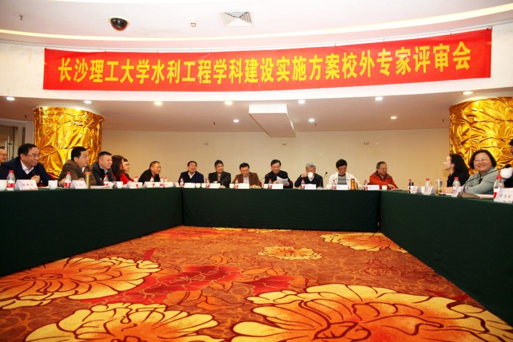 由云顶国际vip8866“双一流”建设办公室主办、水利工程学院承办“水利工程”一流学科建设实施方案校外专家评审会于11月10日上午,在长沙市五华酒店四楼白沙厅会议室成功举行。清华大学余锡平教授、河海大学顾冲时教授、天津大学王元战教授、武汉大学陈立教授、槐文信教授、梅亚东教授、严鹏教授7位校外评审专家和云顶国际vip8866校长曹一家、副校长蒋昌波、校长助理兼“双一流”办主任敖洁、学校“双一流”办、规划法规处、人事处、教务处、研究生院、科研部、国际处、工训中心、成果转化中心等部门负责人、水利工程学院党政班子成员以及学科团队和骨干教师代表等40余人出席。会议由校外专家组组长余锡平教授主持。