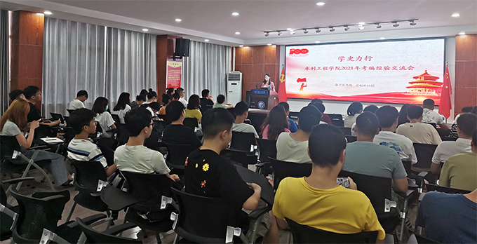 6月24日上午9:30,水利学院在工科三号楼B319召开“学史力行”系列活动之2021年考编经验交流会,研究生辅导员綦丽及部分2019级研究生和2018级本科生参加此次会议,会议由綦丽主持。