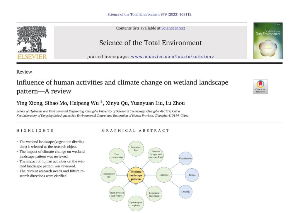 引用格式:Xiong, Y., Mo, S., Wu, H., Qu, X., Liu, Y., Zhou, L., 2023. Influence of human activities and climate change on wetland landscape pattern—A review. Science of The Total Environment, 2023, 879: 163112.