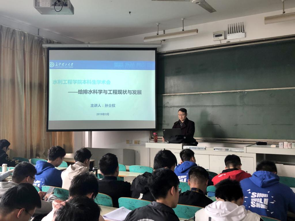 3月19日上午,给排水科学与工程系主任孙士权在金盆岭6教306教室,为2018级给排水科学与工程专业同学做了题为《给排水科学与工程现状与发展》的专题讲座,给排水科学与工程系聂小保、徐学、陈宏、谢敏等老师参加了专题会。