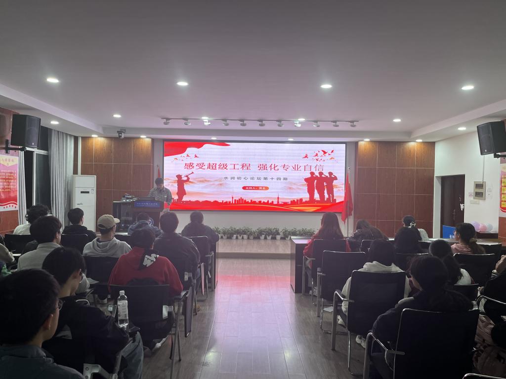 11月24日晚,水利学院在云塘校区工三B319举办了“感受超级工程,强化专业自信”为主题的第十四期“水润初心”论坛活动,全院共计47名同学参加此次论坛,此次论坛由贾圣主持。