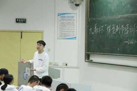 会议开始,技术专家吴根良为大家讲解模型制作方法。他从模型设计、制作材料的选取以及创意设计、评审依据等方面进行了具体的讲解,为大家提供了模型设计与制作的思路。在随后的提问环节,同学们积极提问,吴根良专家耐心解答了每个问题,并预祝每个小组在大禹杯中取得优异成绩。