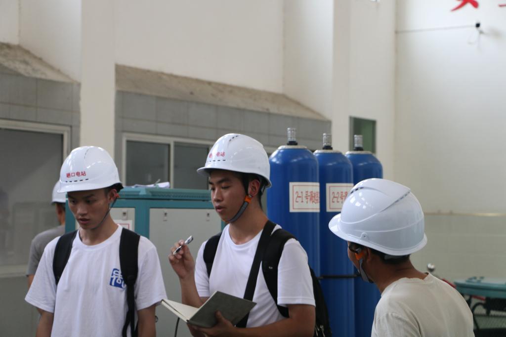 随后,在水库负责人的带领下,实践团成员来到大坝下的发电站,调研了电站构成以及日常的运作情况。成员们联系自身理论专业知识,在实践中获取新知,提出了专业的建议。