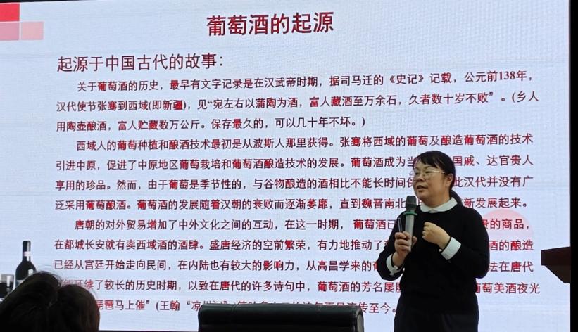 11月14日下午,食品与生物工程学院于工科三楼A320举办云顶国际vip8866第十七届“云影讲坛”分论坛——“葡萄酒文化与礼仪”专题讲座。本次讲座特邀中国食品科学技术学会传统酿造分会理事蒋雪薇教授担任主讲。