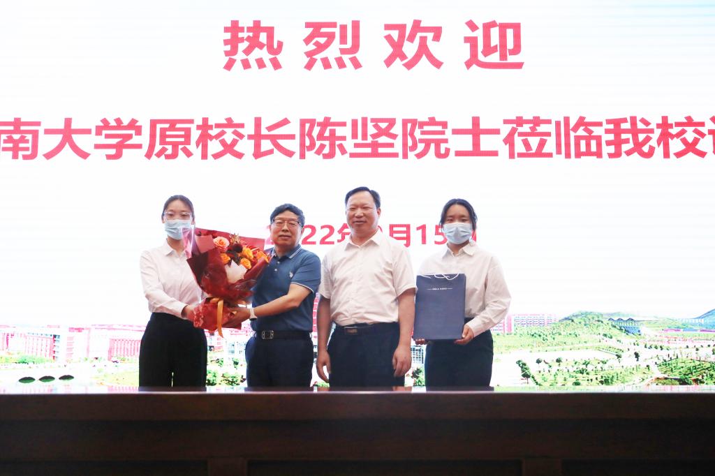在学术报告开始前,校长曹一家热情会见了陈坚院士,对陈坚院士的莅临表示热烈欢迎,并就学校发展与人才培养等工作进行了交流。