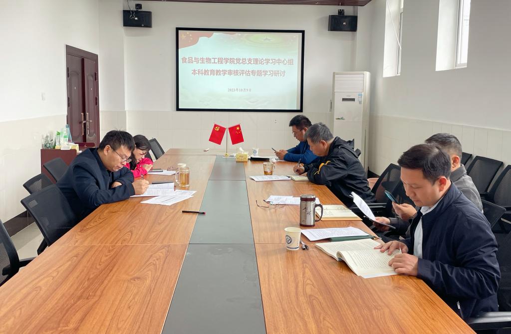 10月9日上午,食品学院党总支理论学习中心组在工科三号楼A349举行新一轮本科教育教学审核评估专题研讨,会议由党总支书记王建辉主持,中心组全体成员、固定列席人员参加学习研讨。
