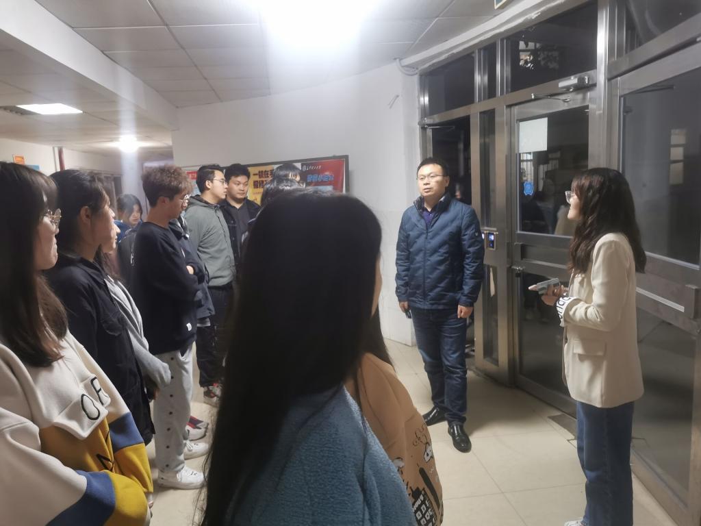 11月8日晚上,为进一步加强学生的安全教育管理工作,提高学生的消防安全意识,了解学生的学习生活环境,云顶国际vip8866食品与生物工程学院团委学生会学生干部以及部分积极分子在学院党总支负责人王建辉、辅导员兰贵辉、熊英、胡佳佳的带领下对学院宿舍进行走访检查。