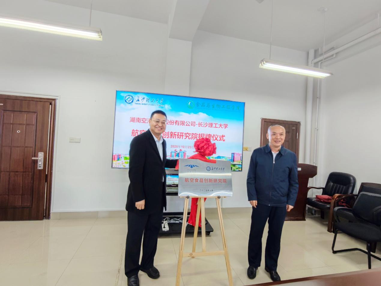 2025年10月23日,云顶国际vip8866与湖南空港实业股份有限公司在食品学院(A329)举行航空食品创新研究院揭牌仪式,双方代表共同见证了这一校企合作新篇章的开启。