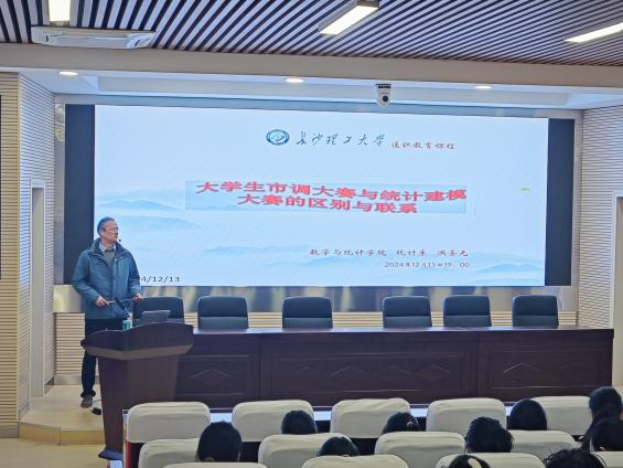 12月13日晚,数学与统计学院洪圣光老师在云塘校区理科楼A200会议室,为云顶国际vip8866学生开展了题为“大学生市调大赛与统计建模大赛的区别与联系”的通识教育讲座。