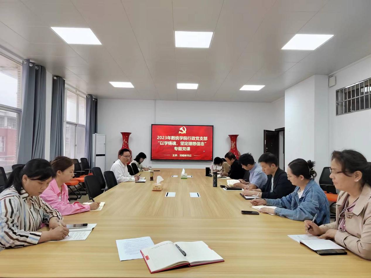 5月6日,学院行政支部在理科数A410开展主题教育专题学习会,党委书记邓崛峰领学“以学铸魂,坚定理想信念”专题党课并作重要讲话,支部书记熊寿遥主持学习会,全体行政人员参加。