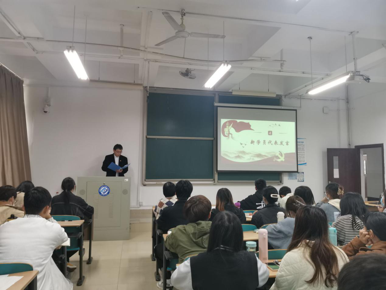 开班典礼在洪亮的国歌中拉开序幕,主持人黄康敏首先对本次培训班的管理条例和课程设置进行了简要介绍,随后,学生代表张潇腾进行发言,表示作为青年的我们应该要担当新时代使命,一心向党,把青春奋斗融入党和人民事业,不负时代重托,不负青春韶华。最后,黄凤英老师强调了对预备党员培训班开班的意义:经过转正前的培训能够使预备党员们更好的坚定对党的信念及对党的认识,并对预备党员提出三个要求:第一,要认真学习马克思主义,用理论知识武装头脑,坚定理想信念。第二,要不断学习新的知识,理论是发展的,党的历史有很多原创思想。第三,学会怎么正确的学习和运用马克思主义,坚定马克思主义信仰,提高思想政治水平。