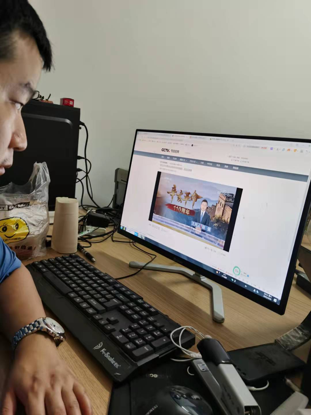 纪念辛亥革命110周年大会10月9日上午在北京人民大会堂隆重举行。中共中央总书记、国家主席、中央军委主席习近平发表重要讲话。学院党委书记邓崛峰和行政党支部党员在理科楼A419集中观看,学院各教工党支部和学生党支部也分别组织党员干部以不同方式收看收听直播盛况。