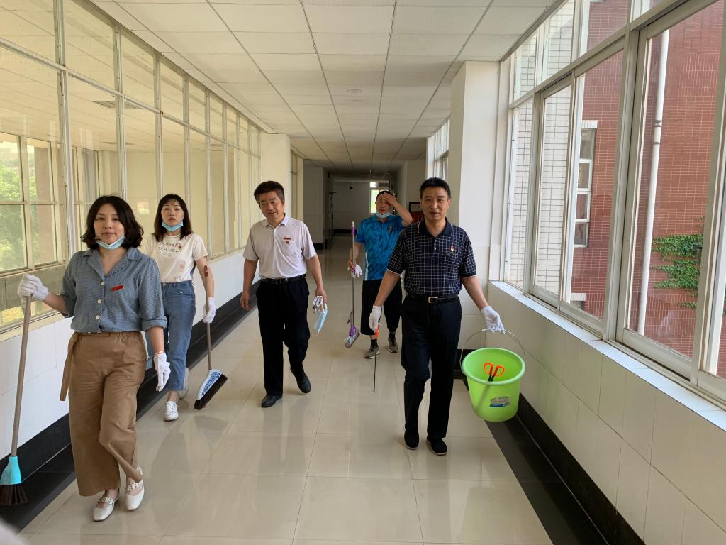 5月19日上午,学院行政党支部结合学校“清洁校园 除害防病 促进健康”活动的相关要求,组织全体党员开展校园环境卫生大扫除的主题党日活动。为师生创造一个安全、文明、干净、舒适的学习生活环境。党委书记张宏伟、副院长仝青山带头参与,以实际行动助力美丽校园建设。