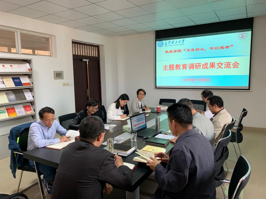 11月5日下午,数统学院在理科楼A503党员活动室召开“不忘初心、牢记使命”主题教育调研成果交流会,学校“不忘初心、牢记使命”主题教育第一指导组蔡立新老师到会指导,院党委委员、领导班子成员出席,会议由学院党委书记张宏伟主持。