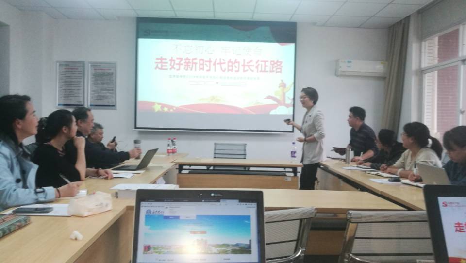 10月15日,数学与应用数学系支部党员、数统学院副院长李景博士在理科楼A505为支部党员讲了题为《不忘初心 牢记使命---走好新时代的长征路》的党课,党课以习近平总书记在建党95周年的讲话中,向全党发出了“不忘初心,继续前进”的号召为引入,从不忘初心、牢记使命,就要理解初心和使命的丰富内涵,不忘初心、牢记使命,就要知道我们从哪里走来,不忘初心、牢记使命,就要知道我们该怎么做自觉践行三个方面进行详细阐述。