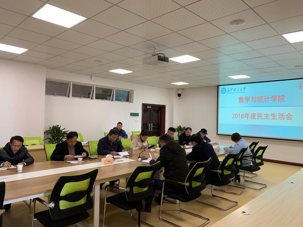 2019年2月25日下午,数学与统计学院召开了2018年度党委民主生活会。聚焦学院2018年工作,深入开展批评和自我批评。副校长黄立宏、组织部副部长李伟出席指导,学院党委班子成员参加,会议由院党委书记张宏伟主持。