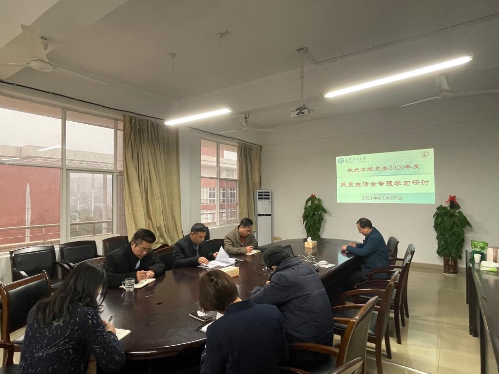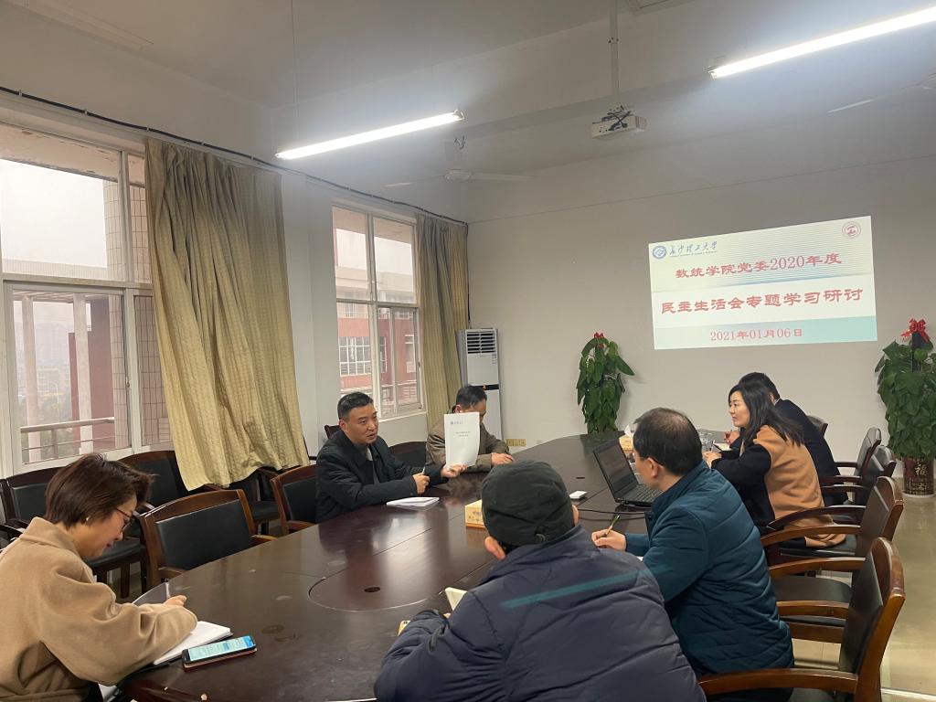 最后,张宏伟强调,开好民主生活会,扎实开展学习研讨,深入进行谈心谈话,认真梳理检视问题,撰写好班子和个人检视剖析材料。把开好民主生活会,作为领导班子和党员领导干部守初心、担使命,找差距、抓落实的一次政治体检,作为检验成效的一项重要内容。2021年是具有承上启下意义的关键一年,我们将迎来建党100周年,学校也在继续推进双一流建设,我们要持续加强理论武装工作,各支部也要加建设,推进党建工作,促进学院各项事业发展。