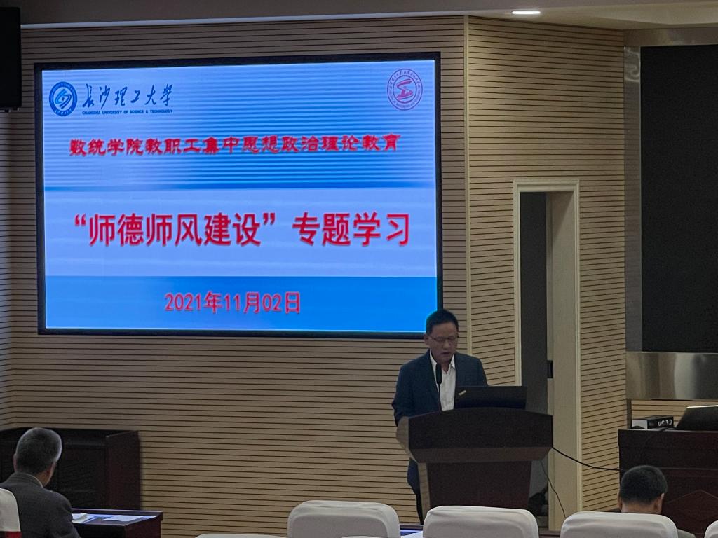 根据学校《关于开展师德师风专题教育学习的通知》,为进一步推进学院师德师风建设,提高教师立德树人水平,11月2日下午,学院在理科楼A200召开“师德师风建设”专题学习会。学习会由党委书记邓崛峰主持,学院全体教职工参加。