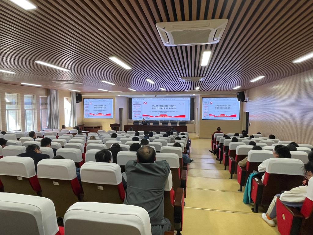 3月8日下午,学院组织全体教职工开展政治理论教育专题学习,党委书记邓崛峰以“深入贯彻党的教育方针 落实立德树人根本任务”为题作学习报告。学院全体教职工参加专题学习。