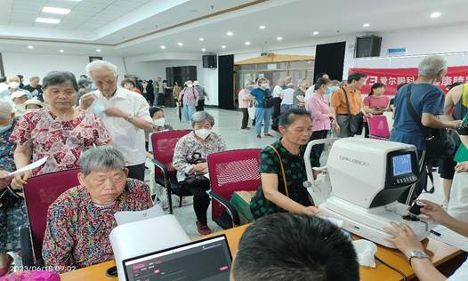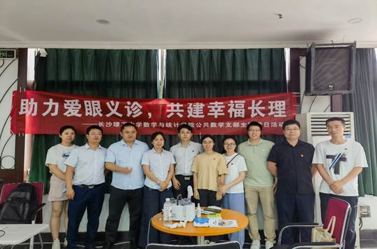 这是数统学院公数支部联合离退休中心、长沙爱尔眼科医院组织开展的“助力爱眼义诊,共建幸福长理”主题党日活动现场。