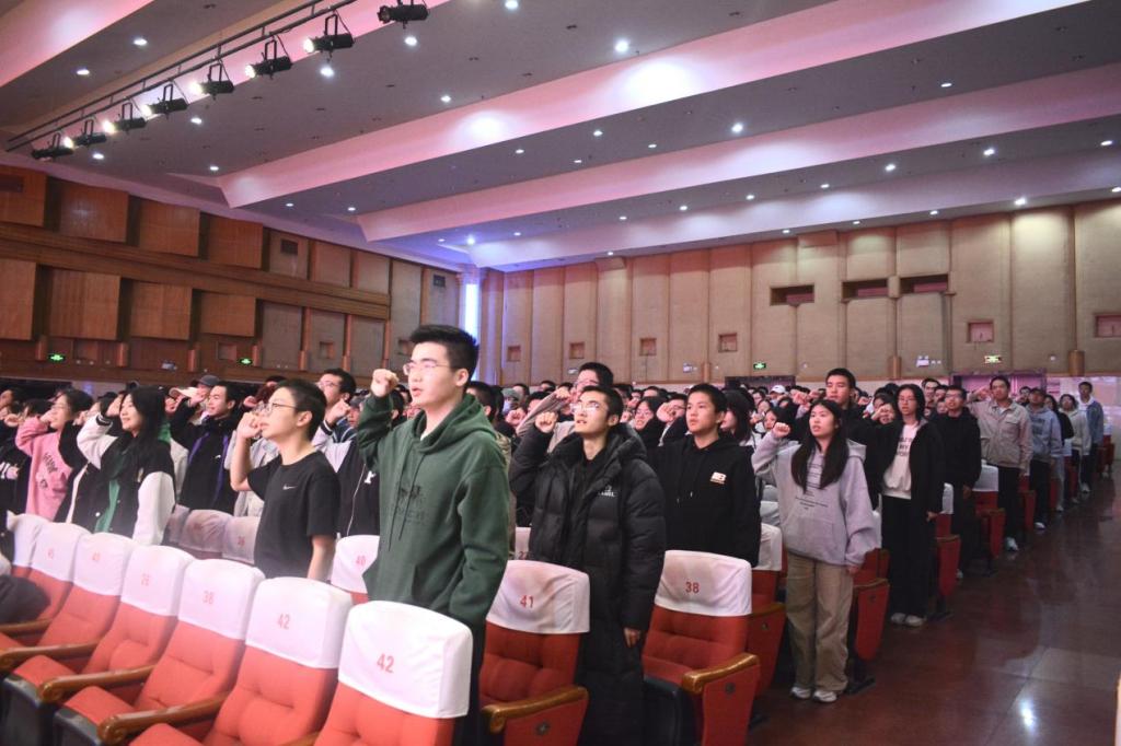 随后,在曾智楠的带领下,全体同学进行成人礼宣誓。在铿锵有力的誓言中,彰显了同学们开启大学新篇章的坚定信念和责任担当。