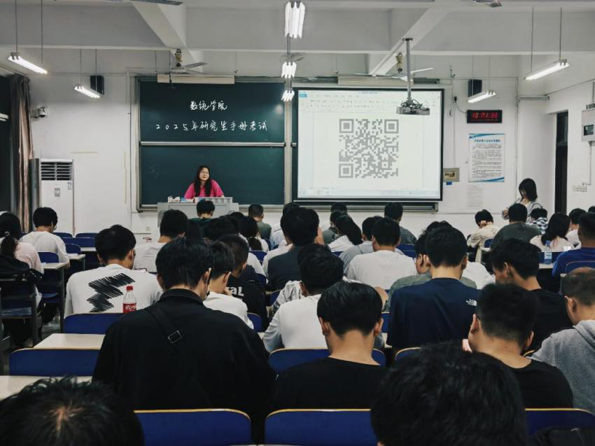 为帮助新生熟知学校管理制度,强化纪律与学术诚信意识,数学与统计学院于9月19日晚在云塘校区工科一号楼B203教室组织了2025级研究生《研究生手册》考试。本次考试由院研会主席杨艺娜监考。