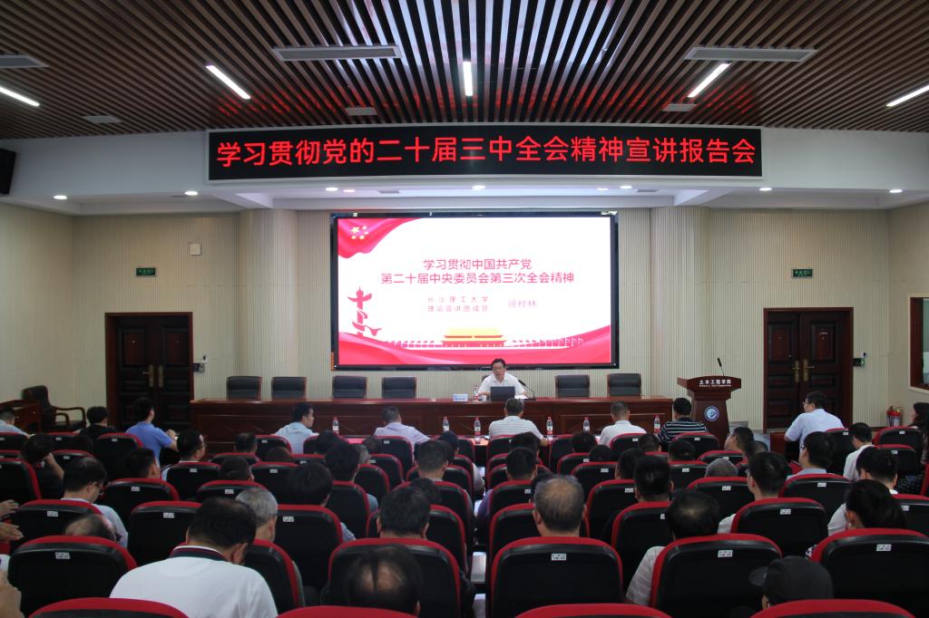 9月24日下午,土木学院在工二B302开展学习贯彻党的二十届三中全会精神宣讲报告会。学校党委委员、纪委书记徐桂林作宣讲报告。土木学院全体院领导班子及教职工参会。