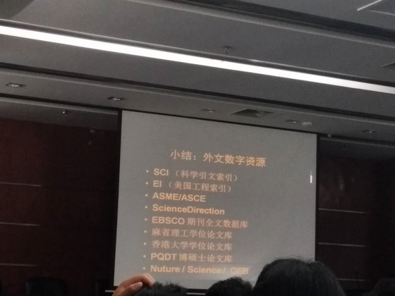 张雪梅老师从学术搜索引擎、馆藏资源、获取原文的途径、检索技巧及实例、学术规范等几个方面进行了详细的阐述。首先重点介绍了Google学术搜索、微软学术搜索、Semantic Scholar学术搜索等国外学术搜索引擎及其使用方法,并强调一个研究人员全部工作时间中的百分之五十是在文献检索上,学会文献检索是进行学术工作的关键一步;其次,非常全面的就SCI、EI、ASCE、SD、PQDT博硕士学位论文库、麻省理工博硕士论文库、香港大学科技论文库、Nature、Science等图书馆的西文数据库资源的学科收录范围、检索方法、使用技巧做了深入、细致讲解;最后对原文获取途径以及学术规范进行了强调。