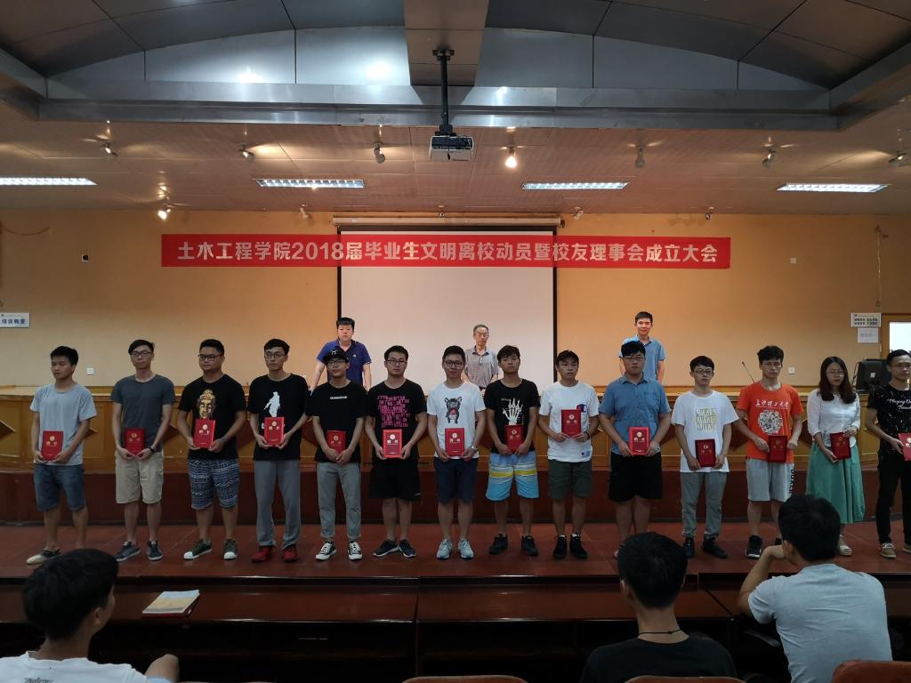 6月22日下午,土木工程学院2018届毕业生文明离校动员暨校友理事会成立大会在金盆岭校区四号教学楼大礼堂隆重召开。学院党委书记张可荣、党委副书记王煜坤出席,2018届全体毕业生参加大会。会议由毕业生辅导员于明浩主持。