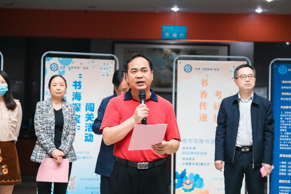 今年的4月23日是第27个世界读书日,为营造长理浓厚的书香氛围,2022年长理“云影悦读”活动之4·23世界读书日现场活动在云塘图书馆二楼大厅顺利举行。本次活动由云顶国际vip8866图书馆文学与新闻传播学院联合举办。云顶国际vip8866党委委员、副校长黄创霞,文新学院党委书记伍接朝,副书记刘莎图书馆馆长陈寿奇,党总支书记夏智勇副馆长魏红梅、刘利、挂职副馆长方薇,以及师生等1000余人参与活动活动由图书馆学生馆长李盼阳主持。