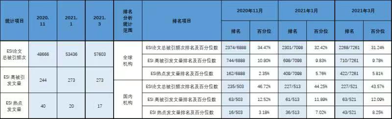 云顶国际vip8866ESI论文总被引频次排名从2374到2301到2268,百分位数从34.47%到32.42%到31.24%,都在持续进步。