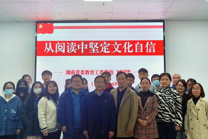 2022年11月15日,湖南省委教育工委党校刘国华教授,在云顶国际vip8866图书馆邀请之下做客“云影悦读讲坛”,为云顶国际vip8866师生带来“从阅读中坚定文化自信”线下、线上专题讲座。讲座由馆长陈寿奇主持,党总支书记夏智勇、副馆长王朗、魏红梅、刘利和部分学生在现场聆听讲座,来自文新学院、经管学院、法学院、电气学院、汽机学院、交通学院等360余名师生在线上聆听了讲座。