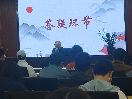 成松柳以《一蓑烟雨任平生——苏轼的人生经历及启示》为题,用幽默风趣的语言,生动地介绍了苏轼的生平事迹,让大家脑中都浮现出一个真实有趣、乐观豁达、才华横溢又生不逢时、看似遥远却又接地气的诗人形象。在介绍苏轼的诗词时,他重点提及了《定风波·莫听穿林打叶声》、《念奴娇·赤壁怀古》、《水调歌头》等脍炙人口的作品,并对这些作品进行深入浅出的分析。在场师生听得津津有味,甚至在成松柳口诵《赤壁赋》时,现场的同学们情不自禁地跟着背诵起来。在答疑环节中,成松柳对线上线下同学提出的问题一一进行了解惑。同时也让同学们意识到,苏轼身为儒、释、道三位一体的文人,也是一个有缺点的凡人,与你我并无不同。