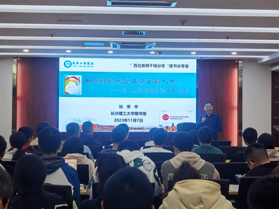 11月8日晚,图书馆在云影文化传播中心(云塘馆B-102)举办以“如何设计充实且快乐的人生——《人生设计课》”为主题的阅读分享会。此次分享会邀请图书馆馆长杜荣华教授担任主讲人,图书馆学生助理副馆长秦铭莲担任主持人。现场80余名师生参加本次读书分享会。