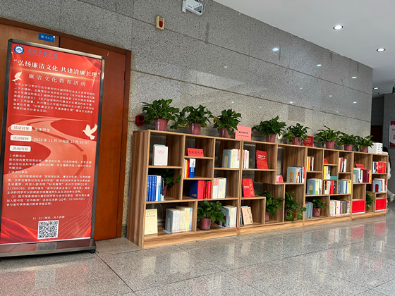 书展设在图书馆二楼大厅。夏智勇介绍了廉洁文化教育书展的基本情况,此次书展共展出书籍300册,包括党规党纪类、廉洁文化类、红色经典类、文学名著类以及社会科学类等,将党史红色教育的廉基因、传统优秀的廉文化、革命先辈的廉事迹以及名人志士的廉思想等融入图书馆,共同打造崇德向善、崇俭尚廉的馆风。