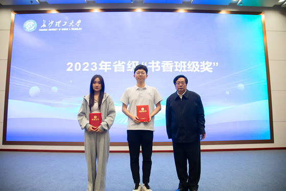 陈世平和各参会嘉宾为2023年度“书香班级奖”、“一校一书”优秀读书报告、阅读之星获得者颁发证书并合影留念。计算机与通信工程学院教师潘枝花作为湖南省教育厅“书香班级奖”优秀指导老师获奖代表发表感言,她寄语所有学生“读书好、读好书、好读书”,希望大家领悟读书的价值、品读优秀的书籍、培养对读书的热爱。交通运输工程学院学生黄嘉怡作为湖南省教育厅“书香班级奖”获奖代表、法学院学生胡君作为湖南省“一校一书”阅读推广活动“优秀读书报告奖”获奖代表发言,他们呼吁大家珍惜阅读的机会,从书中汲取知识的精华,让心灵得到真正的净化与滋养,让书籍成为人生道路上最好的伴侣与导师。