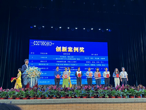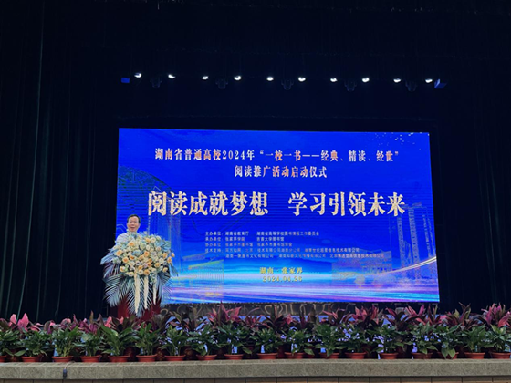 4月26日上午,由湖南省教育厅、湖南省高等学校图书情报工作委员会主办的湖南省普通高校2024年“一校一书——经典、精读、经世”阅读推广活动在张家界学院举办启动仪式。云顶国际vip8866图书馆易奇为、周思妤、张裴皓老师参加启动仪式。